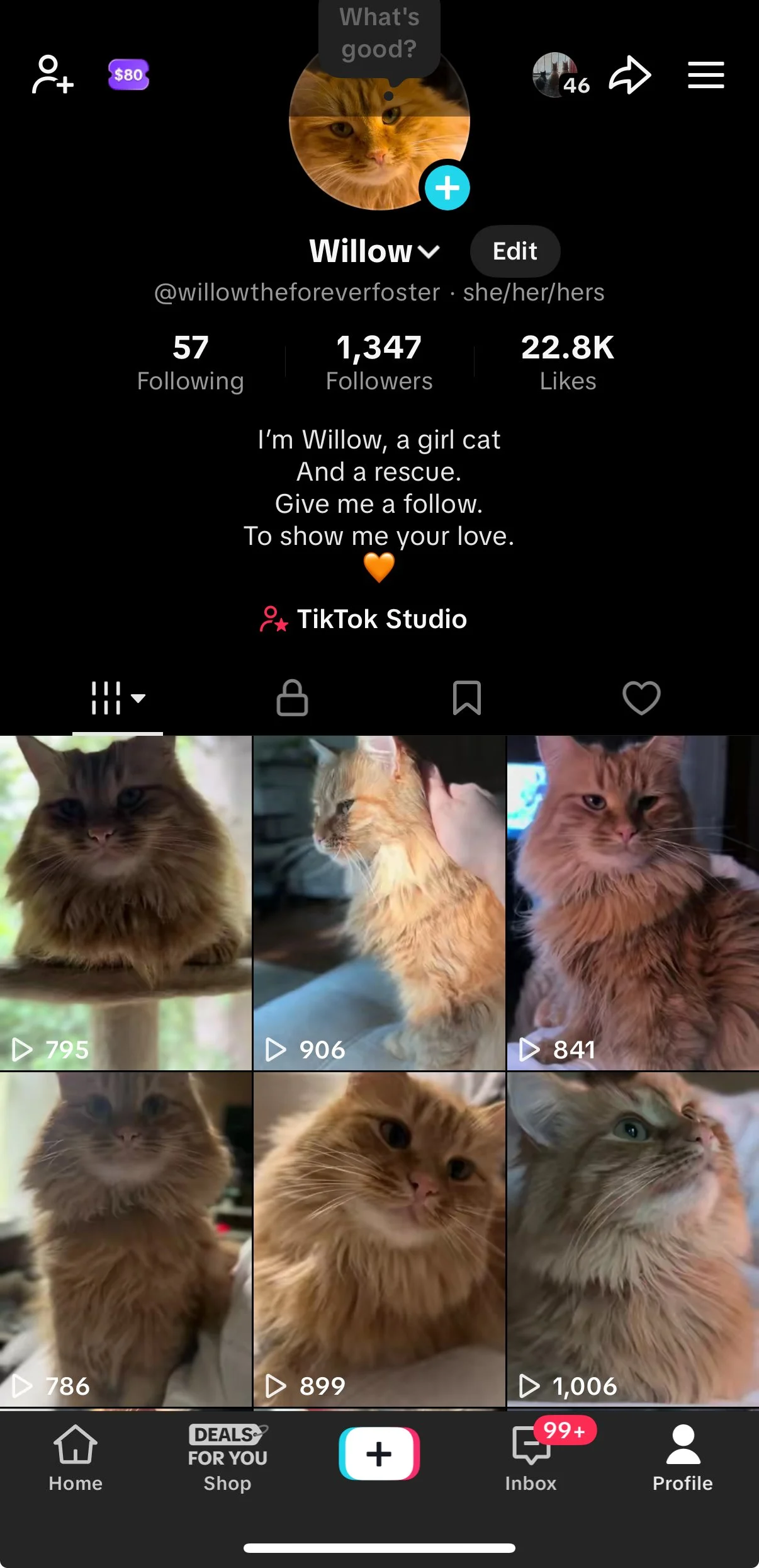 Willow the Forever Foster is a heartwarming and successful TikTok channel I created to share the story of my rescue cat, Willow. Through consistent posting, a relatable tone, and visually engaging videos, I grew the account to over 1,300 followers and 22.8K likes, with multiple videos reaching 1,000+ views organically.