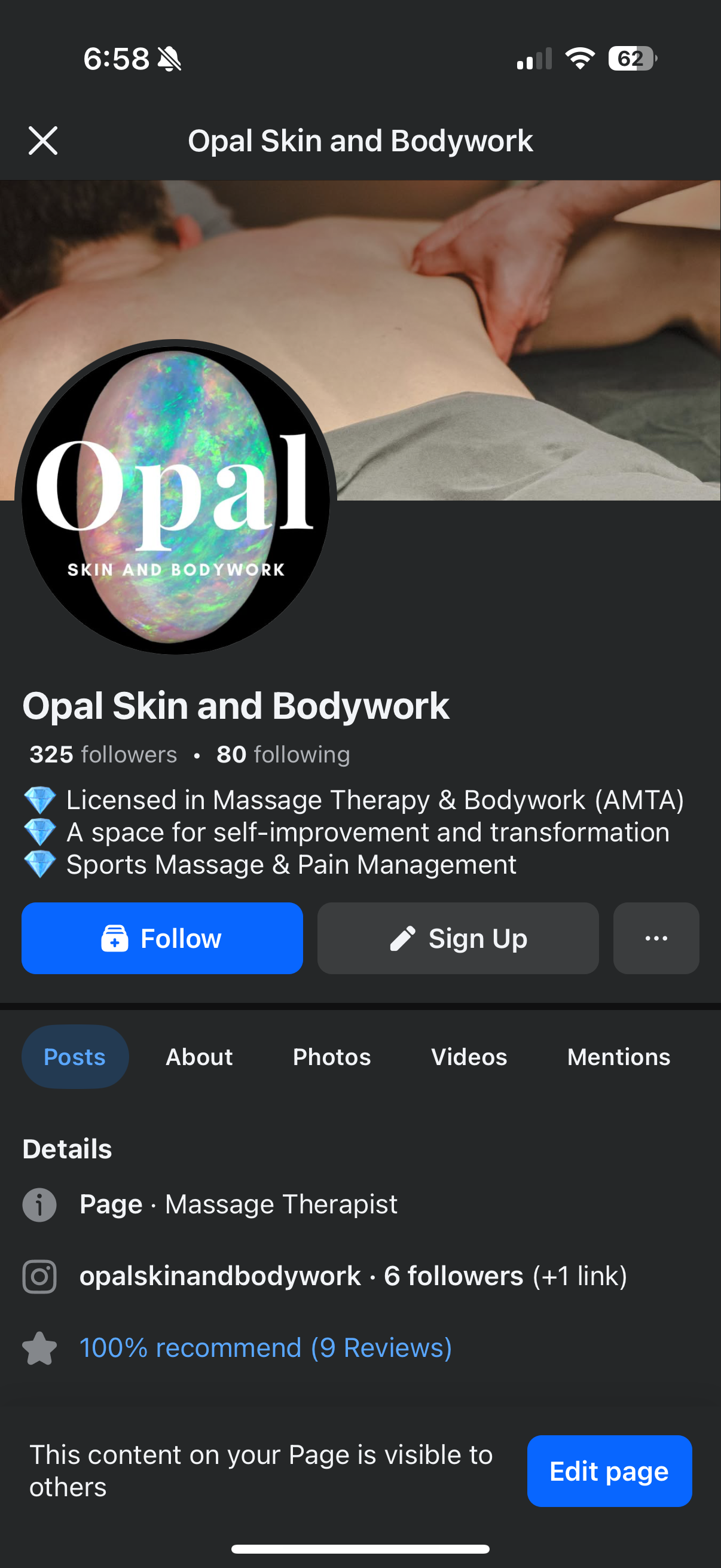 In just a short time, the Facebook page gained 325 followers and achieved a 100% positive recommendation rate based on 9 client reviews. My contributions helped position Opal Skin and Bodywork as a trustworthy, professional, and wellness-centered brand in the local community.